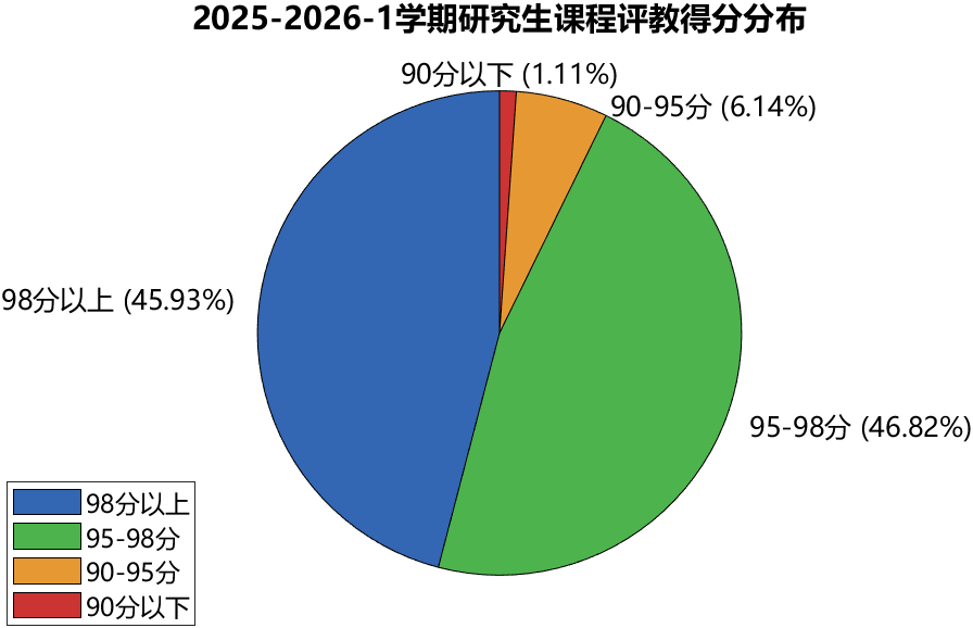 为持续涵育“以教为先、潜心恒心”的育人文化和土壤,持续提升研究生人才培养质量,近日,北京理工大学研究生院发布2025-2026-1学期研究生课程评教结果。本次评教通过收集学生对教学内容、授课方法、课程考核等多维度的真实反馈,以客观数据推动教学实效改进。